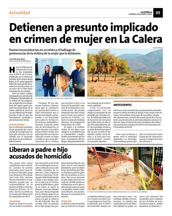 29Detienen a presunto implicado en crimen de mujer en La Calera Pág. 5