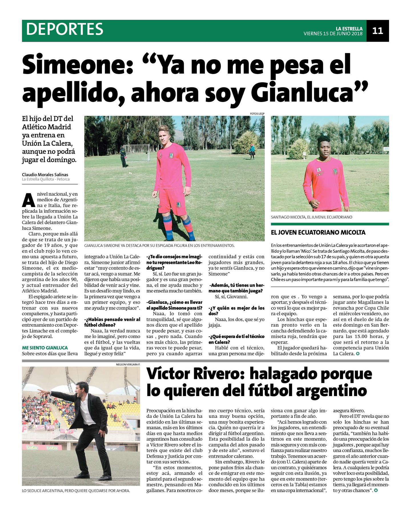 Anivel nacional, y en medios de Argentina e Italia, fue replicada la información sobre la llegada a Unión La Calera del delantero Gianluca Simeone.
