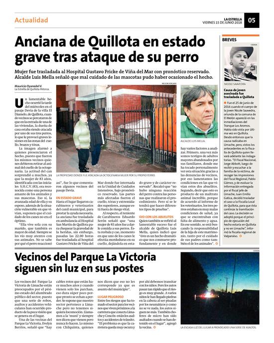 19Anciana de Quillota en estado grave tras ataque de su perro Pág. 5
