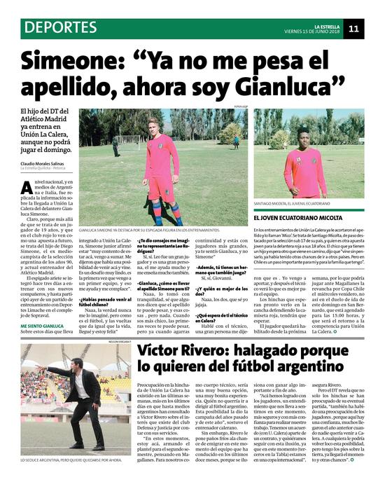 27Simeone: "Ya no me pesa el apellido, ahora soy Gianluca" Pág. 11