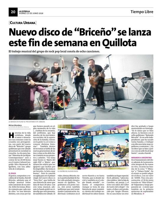12Nuevo disco de "Briceño" se lanza este fin de semana en Quillota Pág. 20