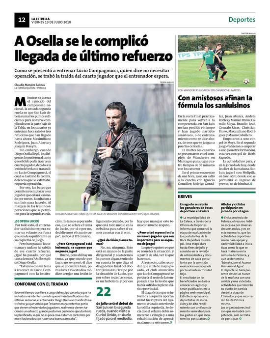 39A Osella se le complicó llegada de último refuerzo Pág. 12