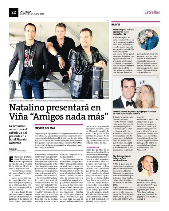 14Natalino presentará en Viña "Amigos nada más" Pág. 22