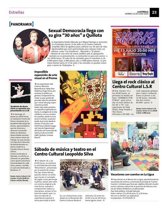 18Sexual Democracia llega con su gira "30 años" a Quillota Pág. 23