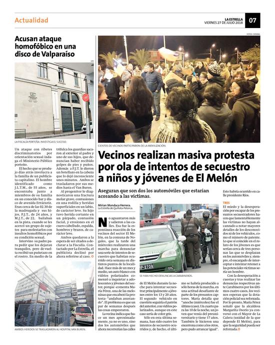 29Vecinos realizan masiva protesta por ola de intentos de secuestro a niños y jóvenes de El Melón Pág. 7