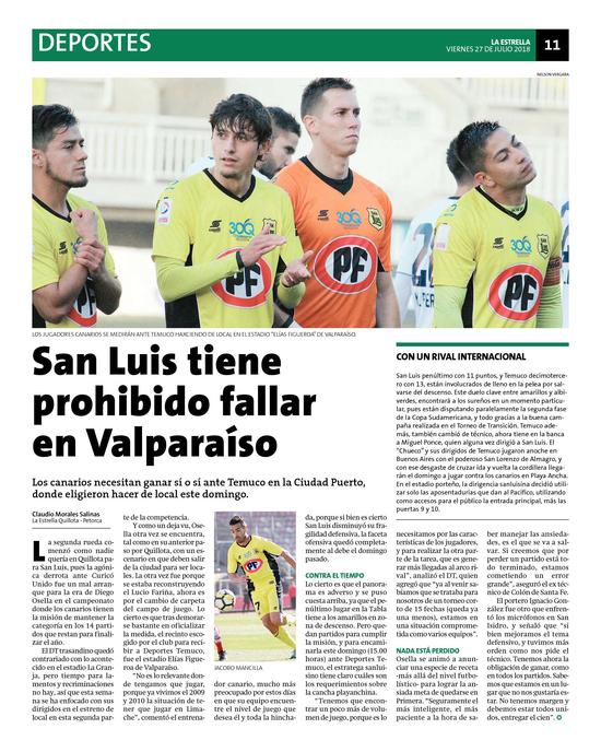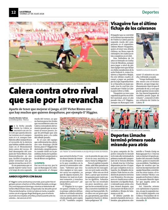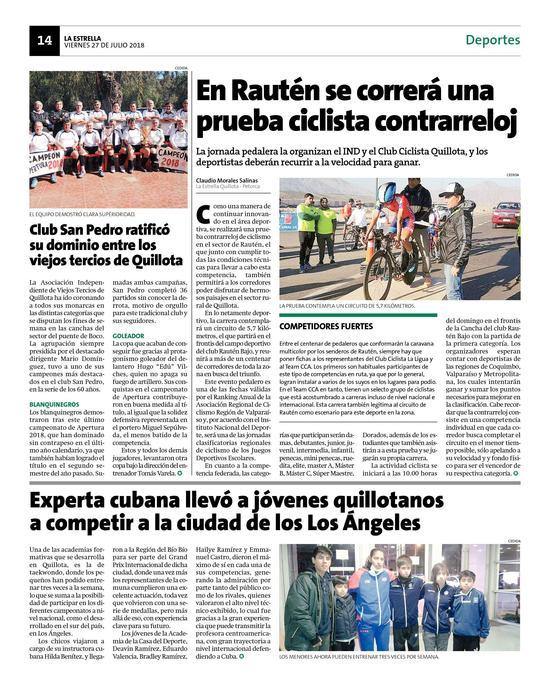 27Club San Pedro ratificó su dominio entre los viejos tercios de Quillota Pág. 14