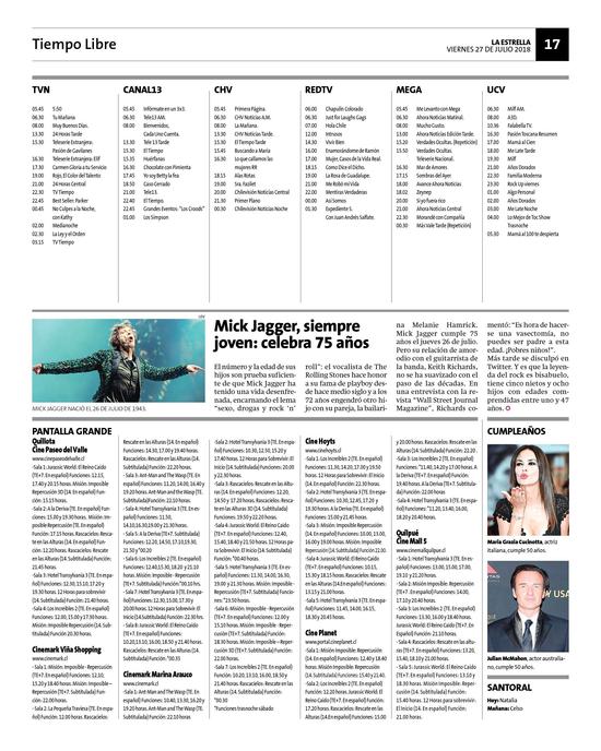13Mick Jagger, siempre joven: celebra 75 años Pág. 17