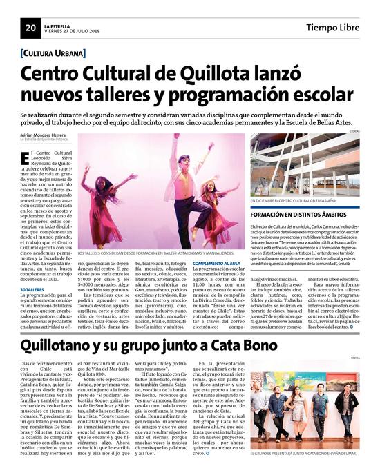 12Centro Cultural de Quillota lanzó nuevos talleres y programación escolar Pág. 20