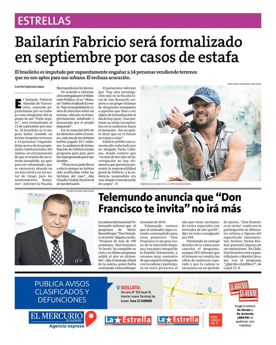 10Bailarín Fabricio será formalizado en septiembre por casos de estafa Pág. 21