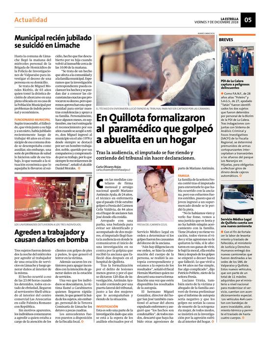 27En Quillota formalizaron al paramédico que golpeó a abuelita en un hogar Pág. 5
