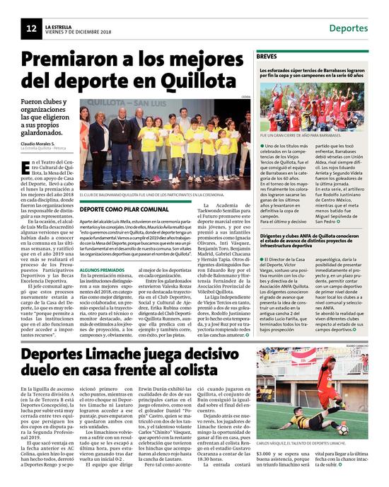 3Premiaron a los mejores del deporte en Quillota Pág. 12