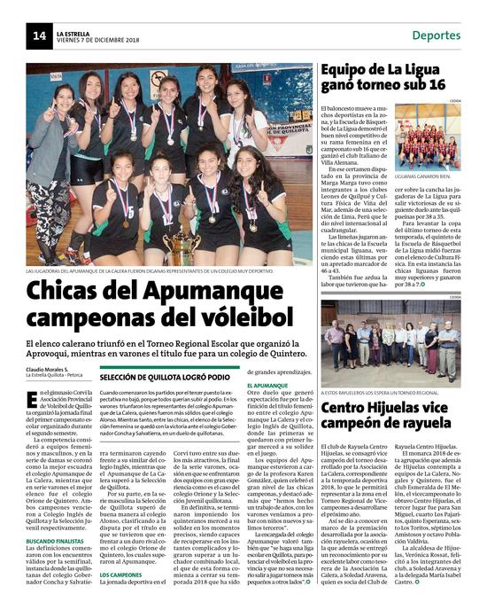 5Chicas del Apumanque campeonas del vóleibol Pág. 14