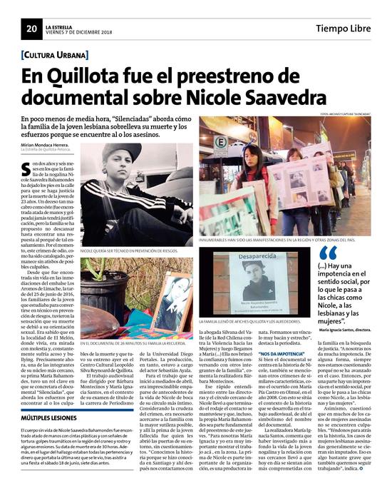 12En Quillota fue el preestreno de documental sobre Nicole Saavedra Pág. 20