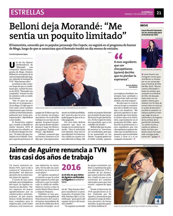 14Belloni deja Morandé: "Me sentía un poquito limitado" Pág. 21