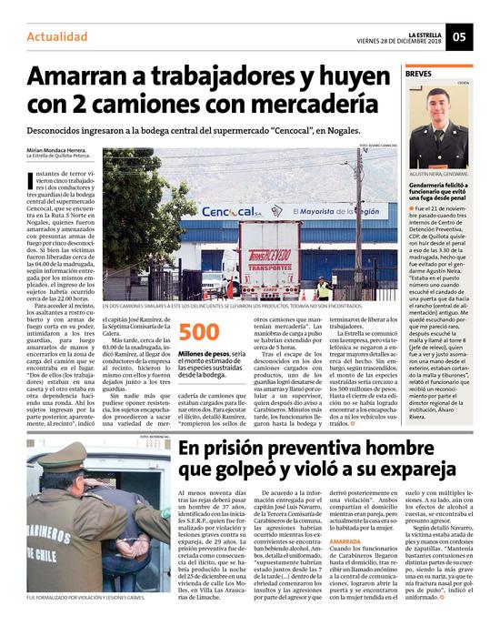 27Amarran a trabajadores y huyen con 2 camiones con mercadería Pág. 5