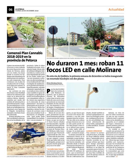 22No duraron 1 mes: roban 11 focos LED en calle Molinare Pág. 6