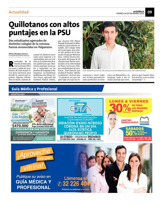 36Quillotanos con altos puntajes en la PSU Pág. 9
