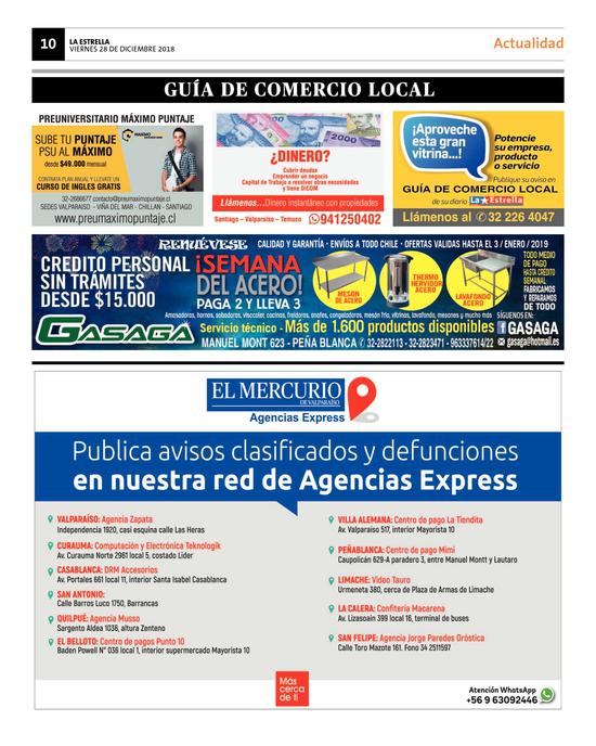 11La hidrogimnasia se tomará la piscina de Quillota el 2 de enero Pág. 14