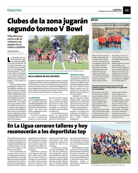 39Clubes de la zona jugarán segundo torneo V Bowl Pág. 13