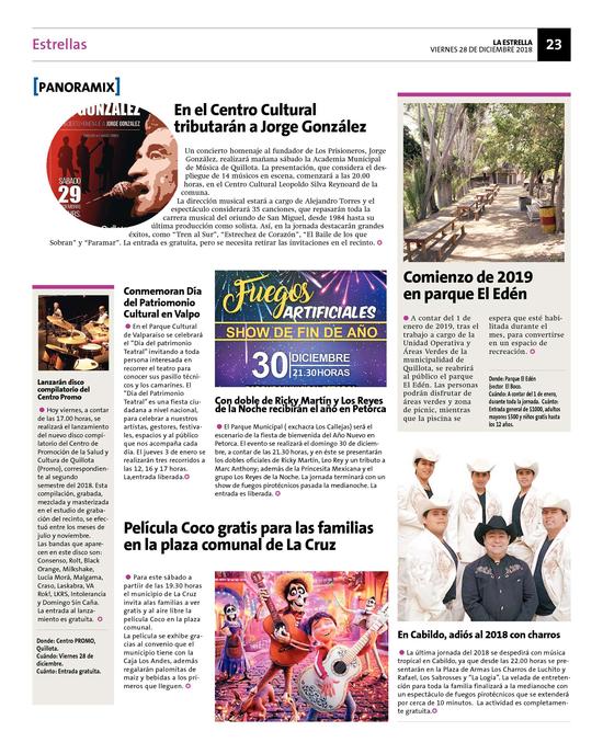 15Con doble de Ricky Martín y Los Reyes de la Noche recibirán el año en Petorca Pág. 23