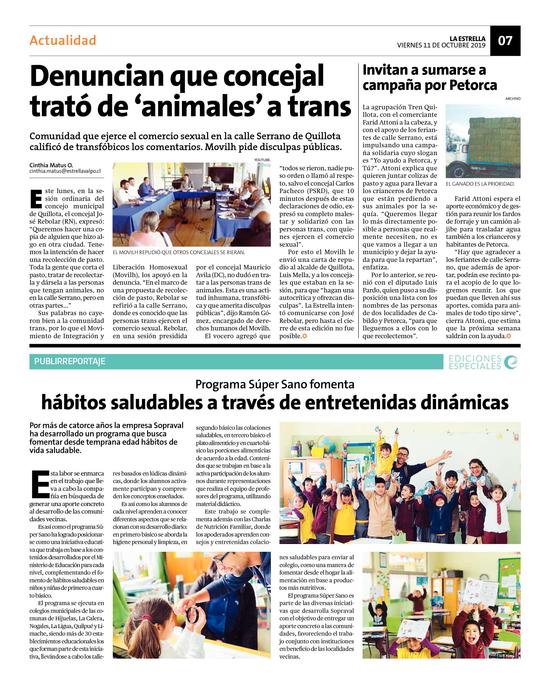 13Denuncian que concejal trató de 'animales' a trans Pág. 7