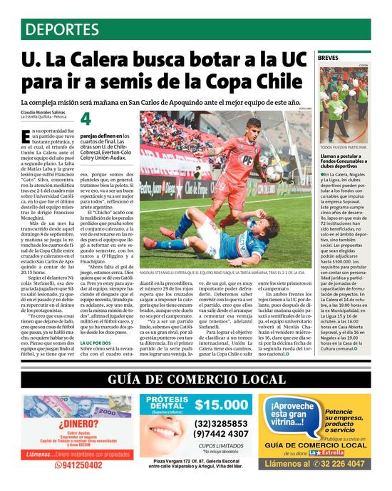 2U. La Calera busca botar a la UC para ir a semis de la Copa Chile Pág. 12