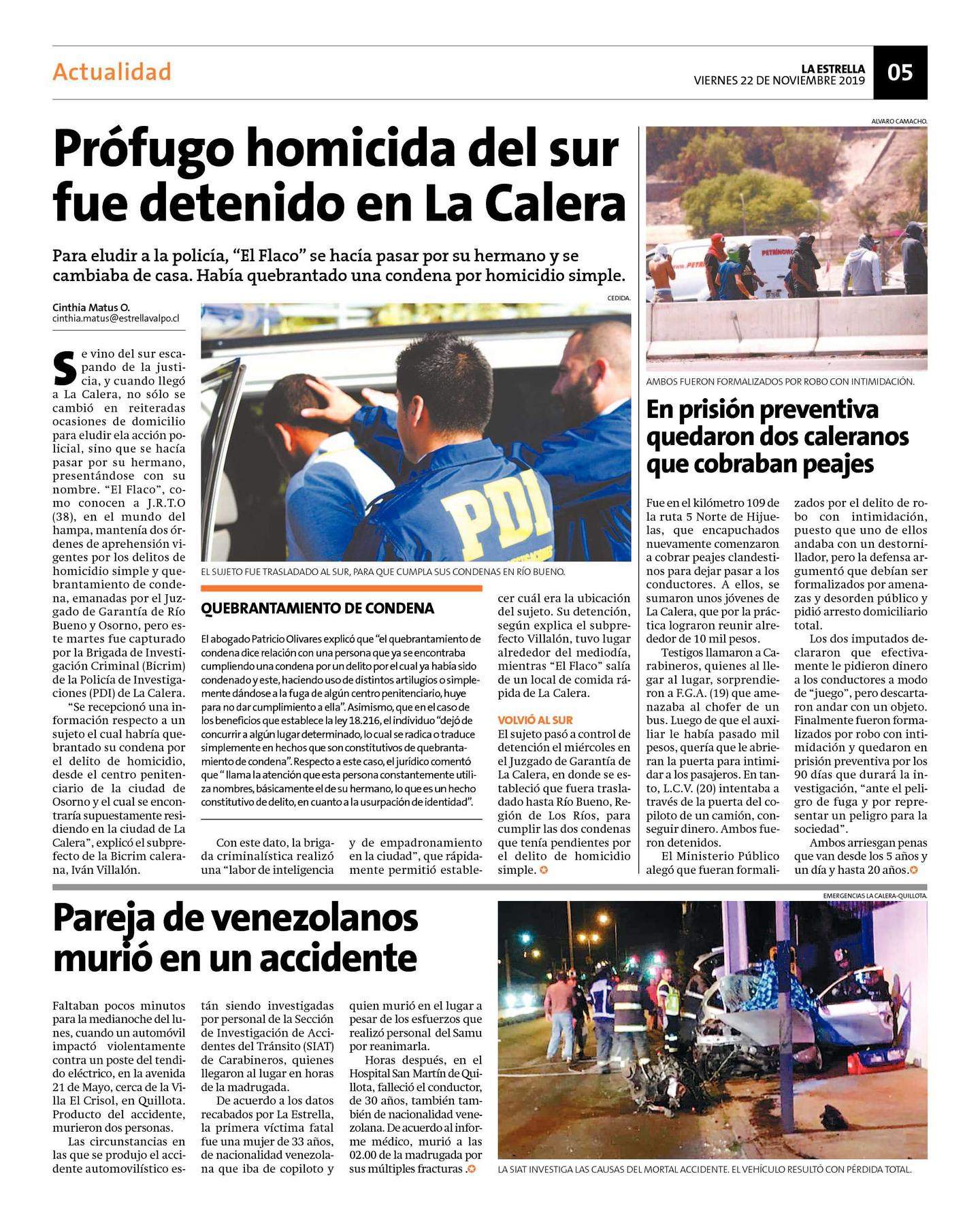 En prisión preventiva quedaron dos caleranos que cobraban peajes