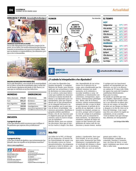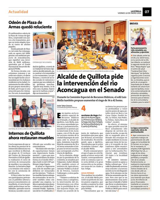 30Alcalde de Quillota pide la intervención del río Aconcagua en el Senado Pág. 7