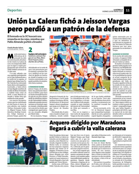 3Unión La Calera fichó a Jeisson Vargas pero perdió a un patrón de la defensa Pág. 11