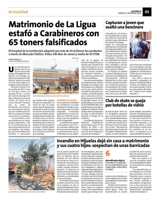23Matrimonio de La Ligua estafó a Carabineros con 65 toners falsificados Pág. 5