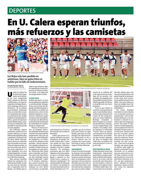 17En U. Calera esperan triunfos, más refuerzos y las camisetas Pág. 10