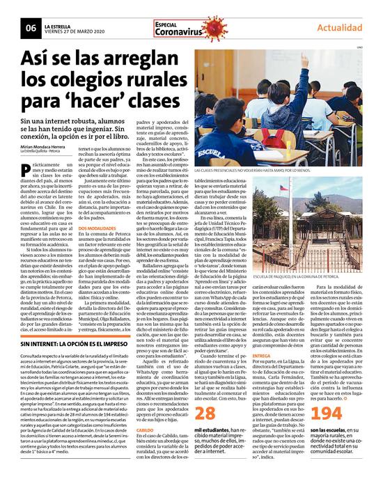 14Así se las arreglan los colegios rurales para 'hacer' clases Pág. 6