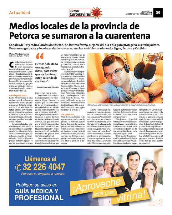 10Medios locales de la provincia de Petorca se sumaron a la cuarentena Pág. 9