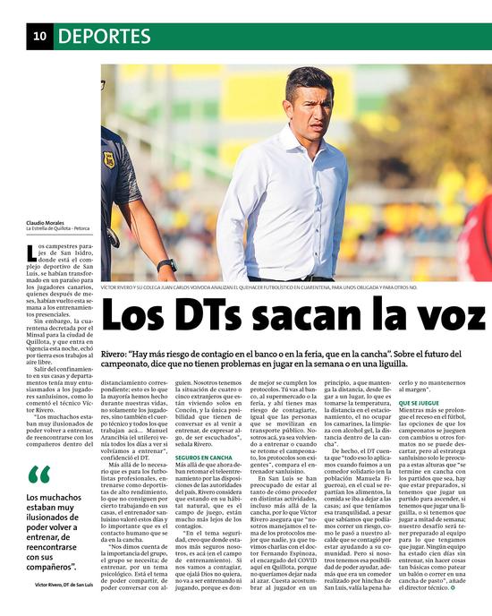 30Los DTs sacan la voz en plena pandemia Pág. 10