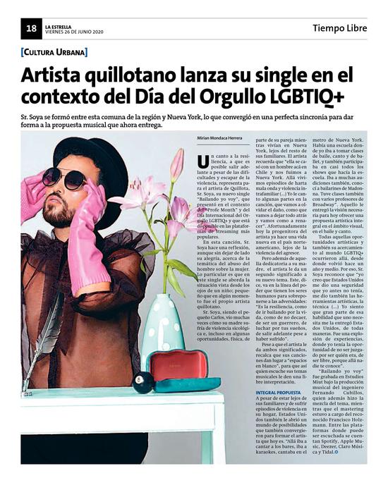 16Artista quillotano lanza su single en el contexto del Día del Orgullo LGBTIQ+ Pág. 18