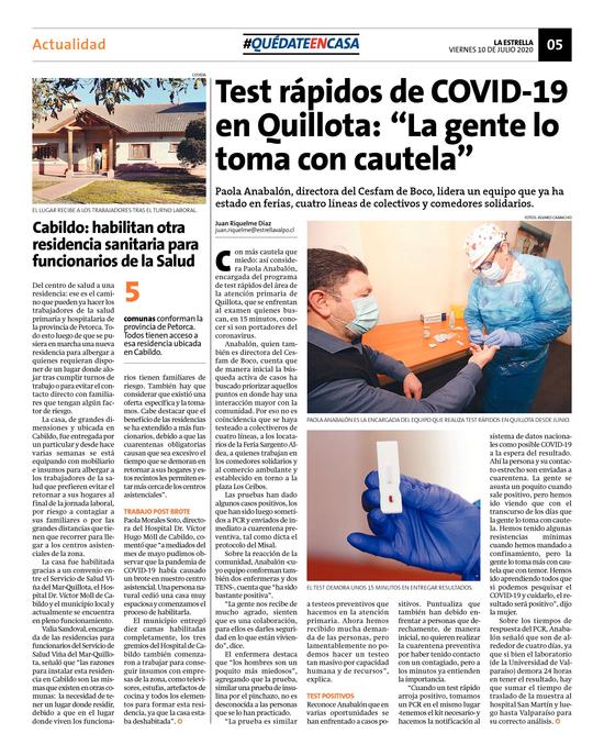25Test rápidos de COVID-19 en Quillota: "La gente lo toma con cautela" Pág. 5
