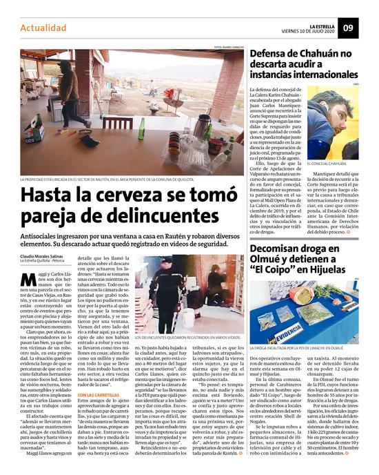 34Decomisan droga en Olmué y detienen a "El Coipo" en Hijuelas Pág. 9