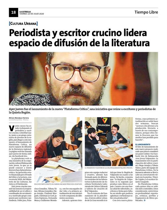 Periodista y escritor crucino lidera espacio de difusión de la literatura