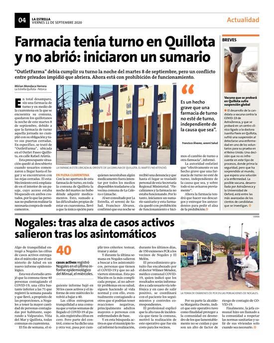 29Farmacia tenía turno en Quillota y no abrió: iniciaron un sumario Pág. 4