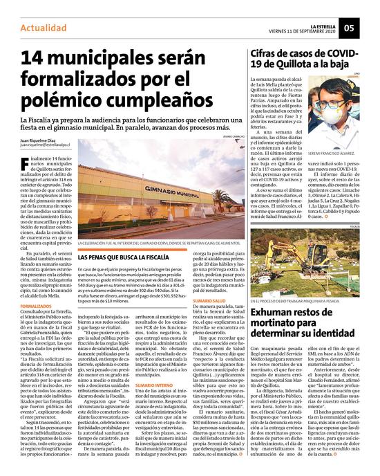 2614 municipales serán formalizados por el polémico cumpleaños Pág. 5