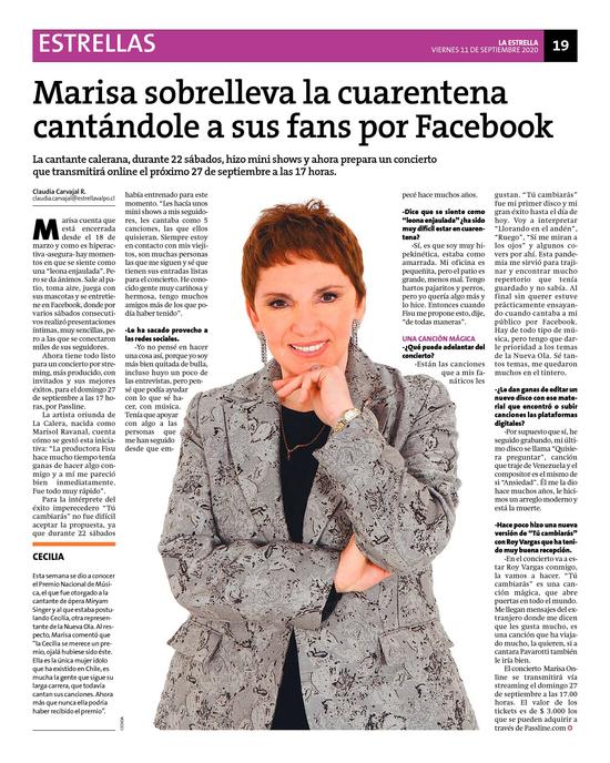 32Marisa sobrelleva la cuarentena cantándole a sus fans por Facebook Pág. 19