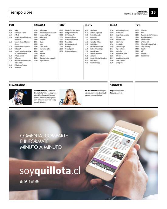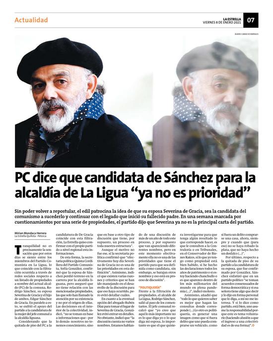 19PC dice que candidata de Sánchez para la alcaldía de La Ligua "ya no es prioridad" Pág. 7