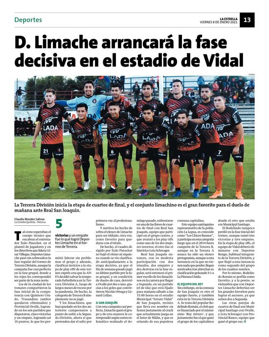 14D. Limache arrancará la fase decisiva en el estadio de Vidal Pág. 13