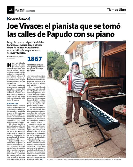 3Joe Vivace: el pianista que se tomó las calles de Papudo con su piano Pág. 18