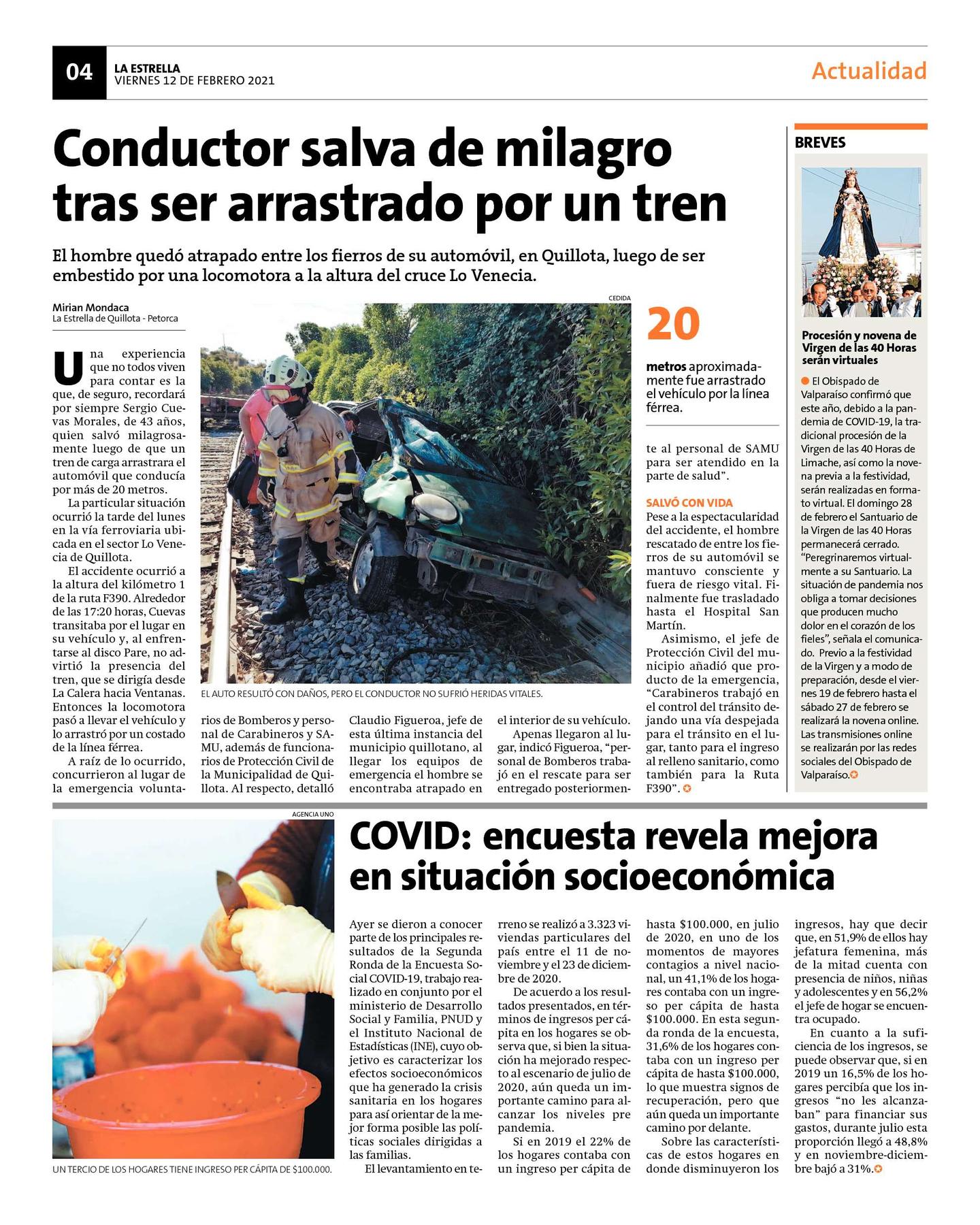 Una experiencia que no todos viven para contar es la que, de seguro, recordará por siempre Sergio Cuevas Morales, de 43 años, quien salvó milagrosamente luego de que un tren de carga arrastrara el automóvil que conducía por más de 20 metros.