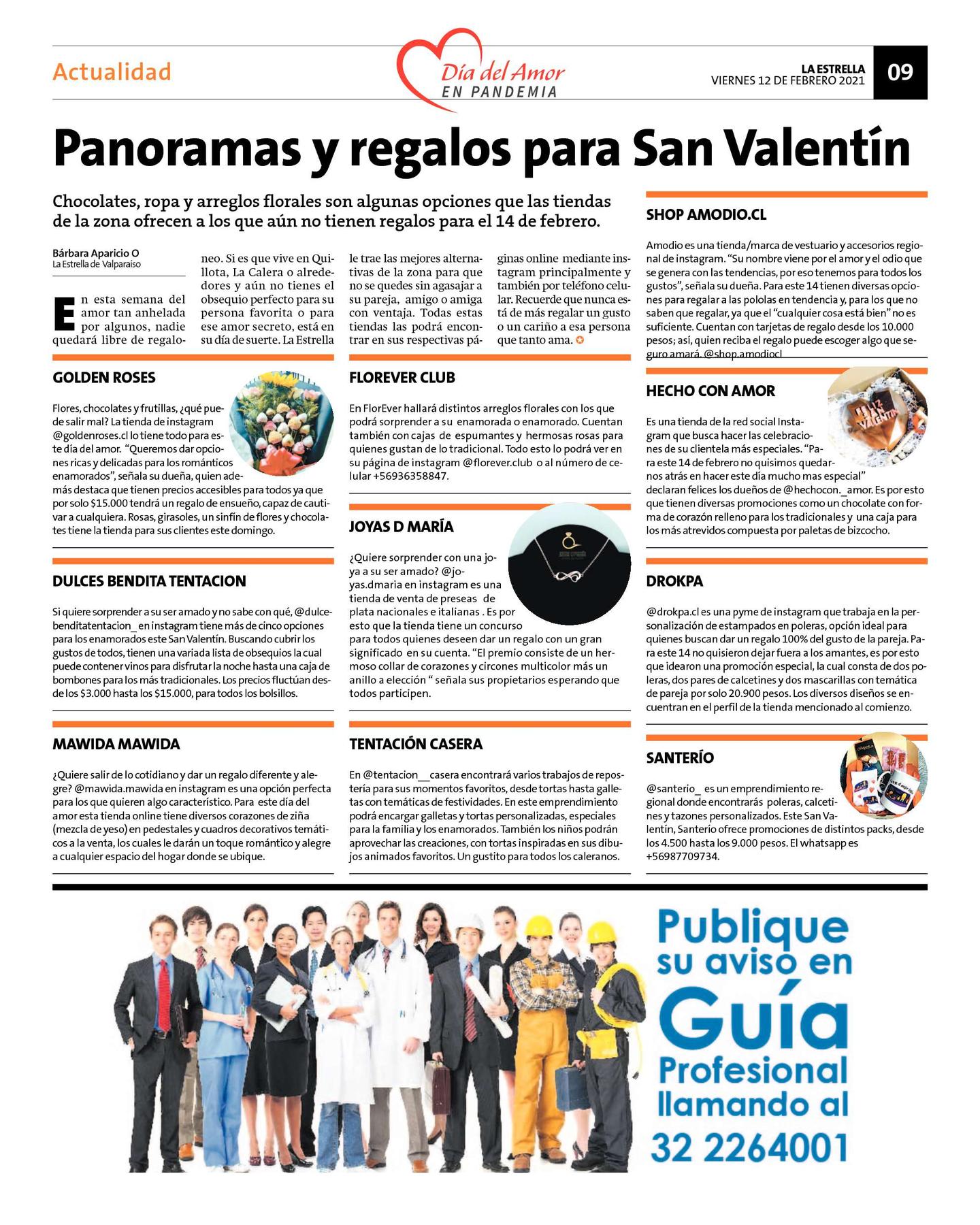En esta semana del amor tan anhelada por algunos, nadie quedará libre de regaloneo. Si es que vive en Quillota, La Calera o alrededores y aún no tienes el obsequio perfecto para su persona favorita o para ese amor secreto, está en su día de suerte. La Estrella le trae las mejores alternativas de la zona para que no se quedes sin agasajar a su pareja, amigo o amiga con ventaja. Todas estas tiendas las podrá encontrar en sus respectivas páginas online mediante instagram principalmente y también por teléfono celular. Recuerde que nunca está de más regalar un gusto o un cariño a esa persona que tanto ama. J