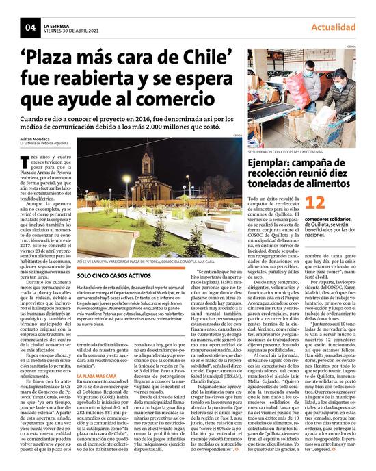 26'Plaza más cara de Chile' fue reabierta y se espera que ayude al comercio Pág. 4