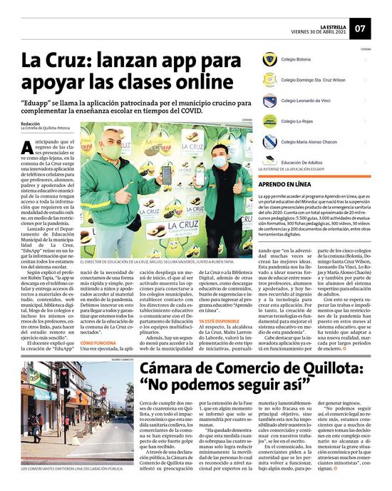 21La Cruz: lanzan app para apoyar las clases online Pág. 7