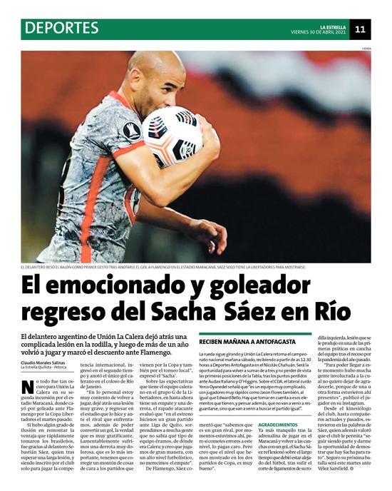 11El emocionado y goleador regreso del Sacha Sáez en Río Pág. 11