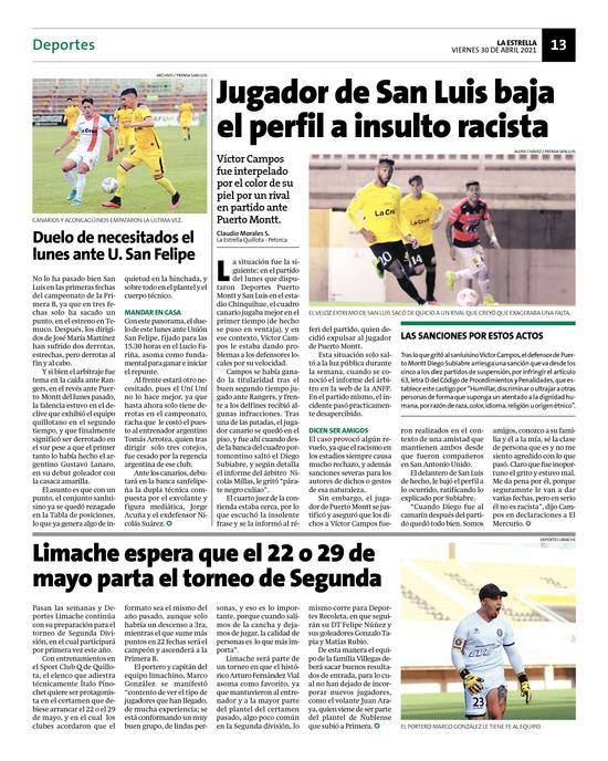 7Jugador de San Luis baja el perfil a insulto racista Pág. 13